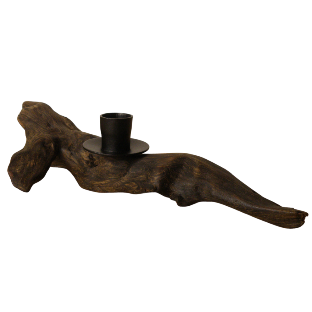 En ljusstake skapad av drivved som jag hittade vid en av sjöarna en regning dag i september, jag fastnade direkt för formen som nästan liknar en arm sträcker sig ut för att hålla fast vid den andra delen.