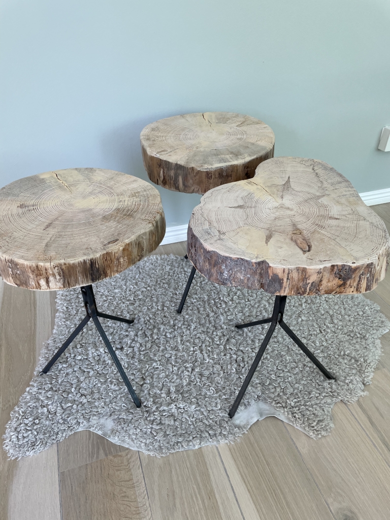 Vi tror på en cirkulär tillverkningsprocess, därför arbetar vi ofta med materiel till både kläder och möbler som har återbrukats. Möblerna som vi tillverkar är rustika och ofta skapade i kombination med metall. Ingen möbel är den andra lik utan de får växa fram organiskt till en unik design. Vi jobbar mest med furu, men även ek, ask, lind och poppel. Smidesarbetet har hittills skett i en smidesverkstad ute i Stockholms skärgård.