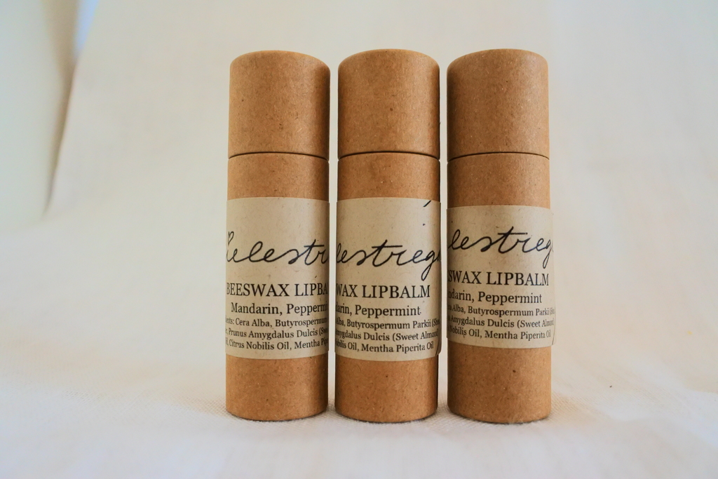 Beeswax is a natural product that comes from my own beehives, and it is not harmful when ingested (because you do end up licking up a part of your lipbalm..).